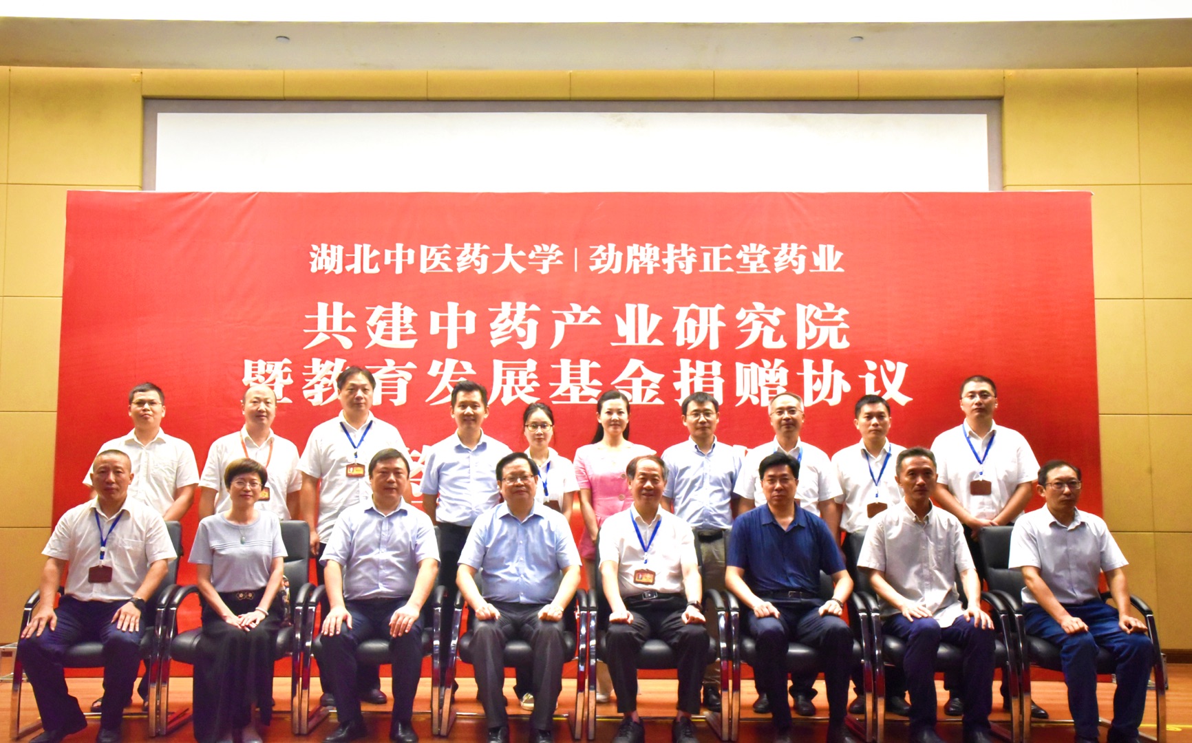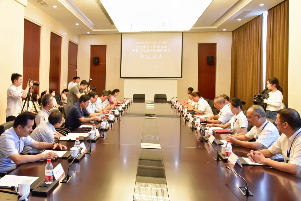 8月11日,勁牌持正堂藥業(yè)有限公司與湖北中醫(yī)藥大學(xué)共建中藥產(chǎn)業(yè)研究院暨教育發(fā)展基金捐贈協(xié)議簽訂儀式在勁牌研究院一樓舉行。湖北中醫(yī)藥大學(xué)校長呂文亮,副校長黃必勝,勁牌有限公司董事長吳少勛,持正堂藥業(yè)總經(jīng)理李清安等相關(guān)領(lǐng)導(dǎo)出席簽約儀式。